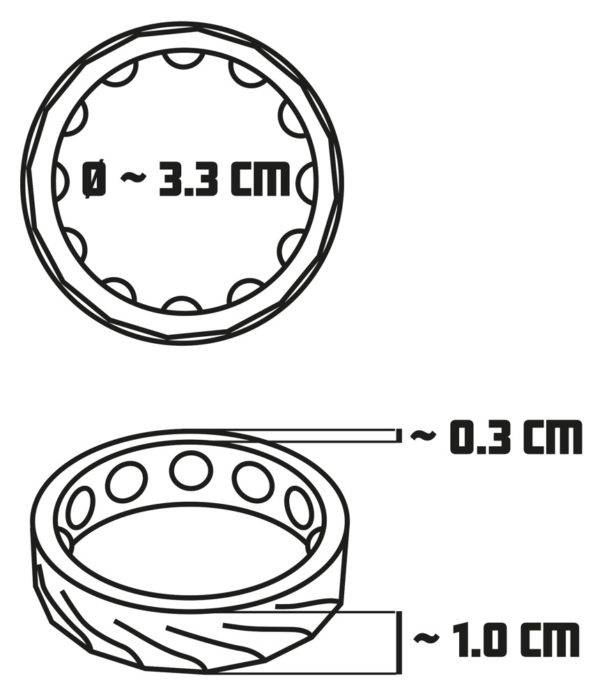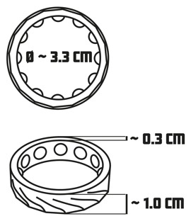 Jeweils 1 cm breit, Innen-Ø 3,3 cm (stark dehnbar); Materialstärke 0,3 cm; Gewicht 4 g.