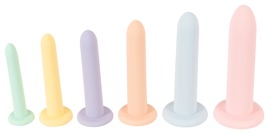 6-teiliges Training Set Six in a Row von You2Toys mit 6 Silikon-Dildos in verschiedenen Pastellfarben, Größen und Gewichten. Nicht nur perfekt für stufenweise anales Dehnen, auch optimal für Beckenboden-Training und als Dehnungshilfe für die sanfte Selbstbehandlung einer zu engen Vagina und zur Nachsorge (Bougieren) bei Neovagina.