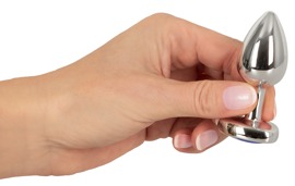 Klassischer Metall-Analplug von Magic Shiver mit eingefasstem Schmuckstein-Herz im analsicheren Stopper. Durch seine konische Form lässt sich der glatte Metall-Plug leicht einführen und sorgt gleichzeitig für ein angenehm ausgefülltes Gefühl. Dazu schmückt der Glitzerstein glamourös den Anus. Der Plug kann auch für Temperaturspiele erwärmt oder abkühlt werden.