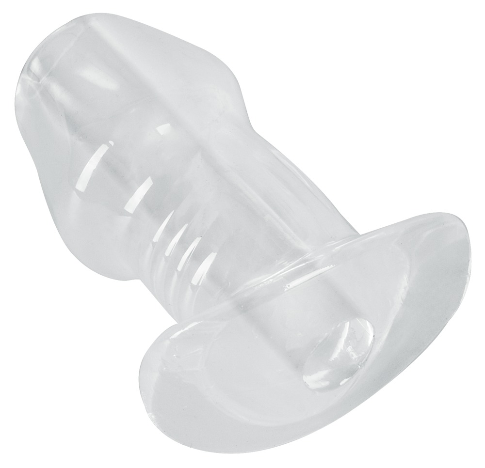 Transparenter, hohler Butt Plug with Tunnel von ANOS für lustvolle Anal-Dehnungen mit Klarsicht und Durchblick. Das hochwertige Softmaterial gleitet geschmeidig und schmiegt sich perfekt an die Wände des Rektums. Raffinierte Abstufungen intensivieren den analen Spaß und sichern den Halt. Der breite Stopper gewährleistet dabei den rutschfesten Sitz im Anus. Durchgängig offen, bietet der Tunnel-Plug nicht nur aufregende An- und Einblicke. Er eignet sich auch hervorragend für Einläufe und Einführspiele mit Finger oder Toys.