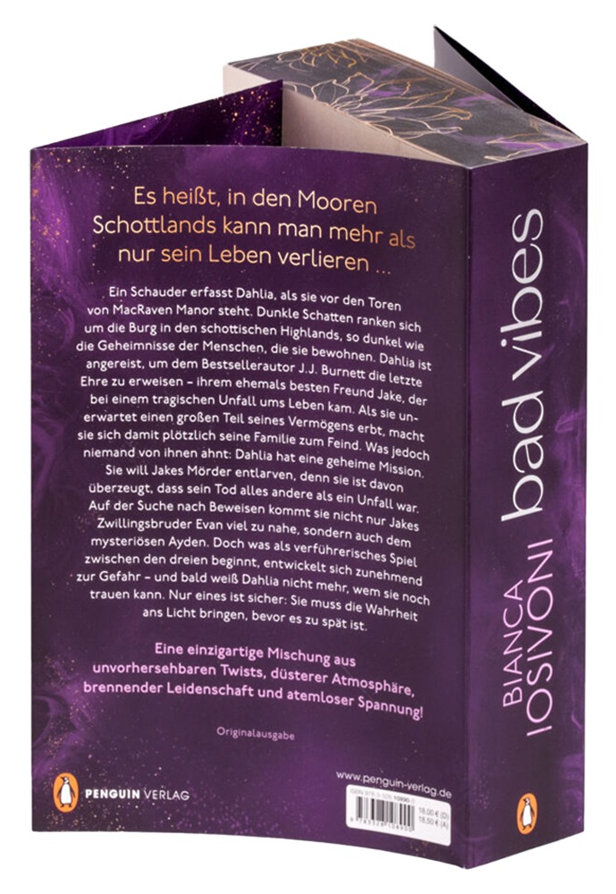 Der Bestseller-Roman „Bad Vibes – Deine Geheimnisse sterben nie“ von Bianca Iosivoni entführt die Leser:innen Seite für Seite in die düstere, geheimnisvolle Atmosphäre einer abgelegenen Burg in den schottischen Highlands. Zwischen verborgenen Wahrheiten, verhängnisvollen Intrigen und schockierenden Wendungen keimt zwischen den Mauern auch eine prickelnde Anziehung auf – voller Nähe, Sehnsucht und Leidenschaft. Die intensive Verbindung zwischen den Charakteren verwebt sich untrennbar mit der allgegenwärtigen Spannung und dem Reiz des Unbekannten. Ein aufwendig gestaltetes Hardcover und 720 fesselnde Seiten machen dieses Buch zu einem packenden Leseerlebnis für alle, die dunkle mysteriöse Geheimnisse lieben – und für Romantik ebenso zu haben sind wie für Gänsehautmomente.