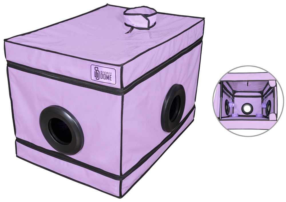 Geschlossene BDSM-Kabine La Niche von Secret Dome für GloryHole-Spielereien, Dark Games, fesselnde Rollenspiele und weitere Fantasien. Die stabile Kabine ist mit ihrem Rohr-Stecksystem und robuster Plane schnell aufgebaut und einsatzbereit. Mit 3 große Öffnungen an den Seiten. Die Öffnung für den Kopf ist mit Reißverschluss und breiter, verstellbarer Halsmanschette ausgestattet. Bequemer Einstieg über Reißverschluss-Tür. Ein LED-Licht und eine weiche Bodenmatte sorgen für mehr Komfort. Die beiliegenden Hand- und Fußfesseln (jeweils 1 Paar) können innen ganz nach Wunsch platziert werden. Die weich gepolsterten Manschetten sind mit Schnallenverschlüssen schnell angelegt und angepasst.