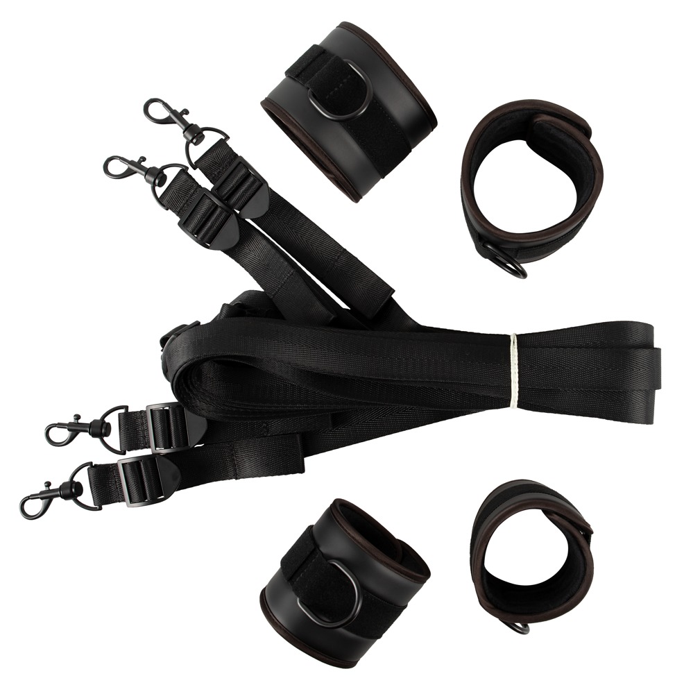 Bettfessel-Set mit Hand- und Fußfesseln in stilvoller Lederoptik