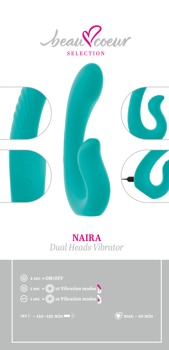 Der NAIRA Dual Heads Vibrator von beau cœur überzeugt mit seinem handlichen Design, frischer Farbgebung und spannenden Strukturen. Ausgestattet mit 2 leisen Power-Motoren (in jedem Kopf einer) verwöhnt der Doppelvibrator innen und außen zugleich. Ob vaginal oder anal eingeführt, bietet er mit jeweils 10 Vibrationsmodi vielseitige Möglichkeiten für aufregenden Synchron-Spaß. Die Modi lassen sich einfach per Knopfdruck getrennt steuern und individuell kombinieren, um ein ganz persönliches Verwöhnprogramm zu kreieren. Perfektes Doppel-Spiel für grenzenlose Lust!