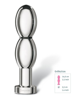 Formschöner bi-polarer Dildo O(h!)-thello für Reizstromgerät Tension Lover oder Pure Vibes von Mystim. Dieser Ovaldildo kann sowohl vaginal als auch anal verwendet werden und überzeugt durch seine sehr sanften Rundungen. Bereits das Einführen des ersten Ovals dieses Dildos stimuliert Vagina oder Anus intensiv. Die prallen Formen reizen bei jeder Bewegung, und jedem noch so kleinen Anspannen der Muskulatur. Sobald man O(h!)-thello tiefer einführt, durchdringt eine wohlige elektrische Stimulation alle Nerven, und sorgt so je nach Einstellung für sanftes Kribbeln, rhythmisches Pulsieren oder sinnliches Stoßen. Spannt man nun die Muskulatur an, intensiviert sich die Stimulation sofort, so dass man auch ganz ohne Hände die eigene Erregung steuern, steigern, und in Ekstase gipfeln lassen kann.