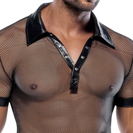 Hemd aus Netz und Wetlook, mit Polokragen Svenjoyment