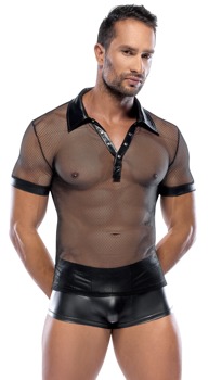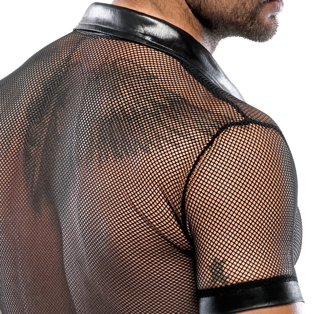 Hemd aus Netz und Wetlook, mit Polokragen