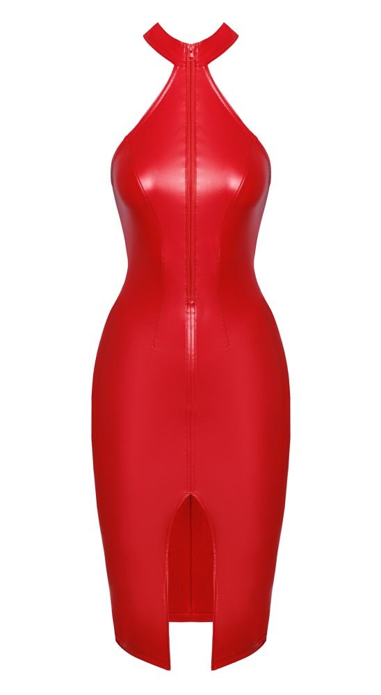 Schulterfreies Kleid Orgia von Noir in knieumspielender Länge. Enge taillierte Schnittführung im anschmiegsamen Powerwetlook. Und in toller Farbe: Knallrot. Rundum weich und elastisch für maximalen Tragekomfort. Vorne mit durchgehendem Reißverschluss vom Stehkragen bis zum langem Gehschlitz.