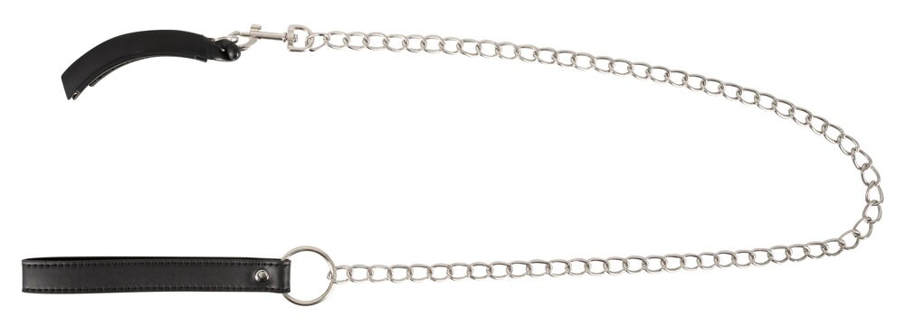 Die Pussy Clamp with a leash von Bad Kitty kombiniert eine raffinierte Labienklemme mit einer Kettenleine. Die anatomisch ideal gebogene Klemme öffnet sich per Schenkelfeder und wird nach dem Anlegen um die Vulvalippen einfach zugeclippt. Die lange Kettenleine mit Handschlaufe aus Lederimitat ist dank Karabiner von dem Ring an der Klemme abnehmbar.