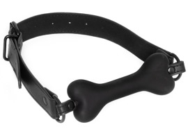 Hochwertiger schwarzer Knochen-Knebel/Bone Gag von Bad Kitty. Der ergonomische, bissfeste Knochen ist komplett aus softem Silikon gearbeitet für sicheren Sitz, besten Kau-Komfort und hygienische Reinigung. Mit dem Kopfriemen aus stilvollem weichem Lederimitat und dem verstellbaren Schnallenverschluss ist der Knebel schnell angelegt und jeder Kopfgröße angepasst. Tierisch bequem beim verspielten Puppy- und Doggy-Play mit leisem Knurren und Biss!