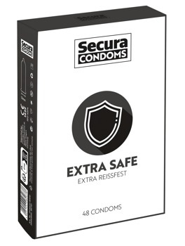 Transparente, extra reißfeste Kondome Extra Safe von Secura Condoms für längeren Spaß im Bett! Die dickere Wandstärke sorgt für weniger spürbare Reibung an der Eichel und kann so das Vergnügen länger hinauszögern. Zudem bieten die Kondome besondere Sicherheit. Mit Feuchtbeschichtung auf Silikonbasis für lang anhaltenden reibungslosen Spaß. Veganfreundlich. Geruchs- und geschmacksneutral.