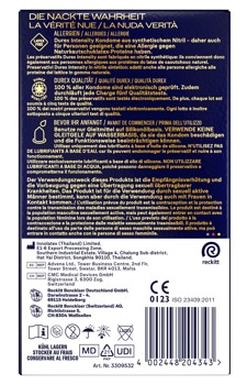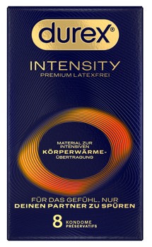 Ultradünne, latexfreie Kondome Intensity von Durex aus Nitril für eine intensive Körperwärmeübertragung und das Gefühl, nur den/die Partner:in zu spüren. Mit viel Silikongleitgel befeuchtet. Transparent, gerade Form mit Reservoir.