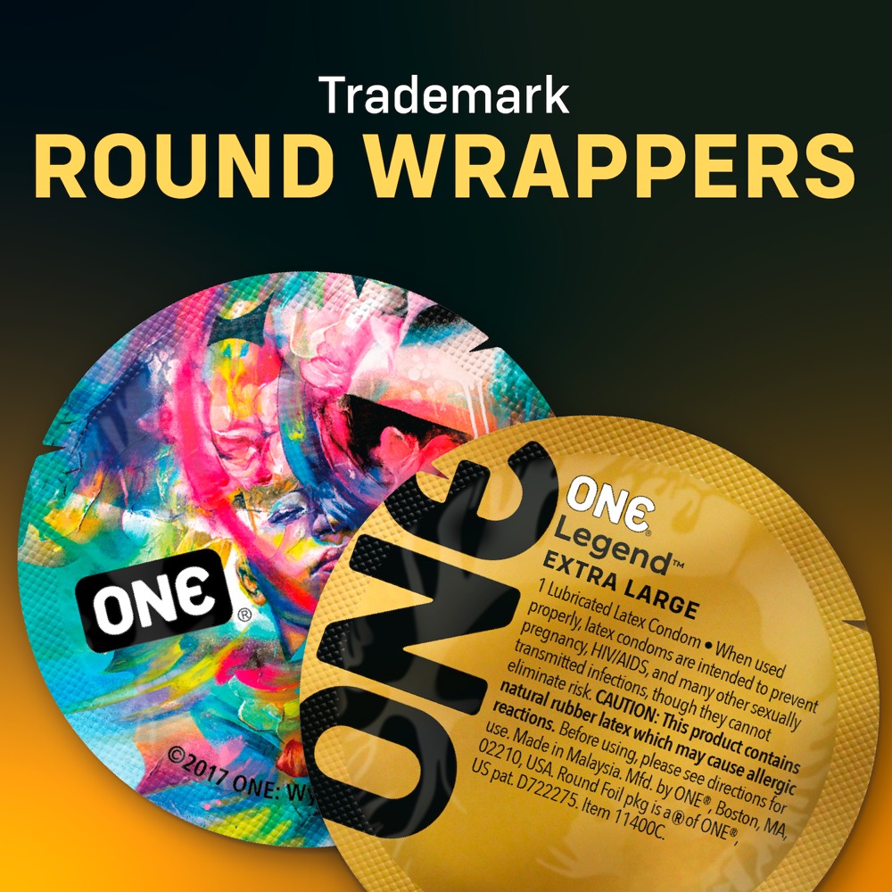 Transparente, extragroße Kondome Legend von ONE für bequemen und sicheren Sitz am größeren Penis. Länger und breiter als herkömmliche Kondome. Die ausgestellte Form mit mehr Platz im Kopfbereich sorgt für müheloses Anlegen und sicheren Sitz mit besten Komfort. Das ultraweiche Sensatex-Naturkautschuklatex bietet ein natürliches Lustempfinden. Vegan und gentechnikfrei hergestellt. Mit Silikonöl befeuchtet für perfekte Geschmeidigkeit.