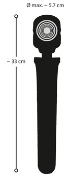 Gesamtlänge 33 cm, Massagekopf 6,3 cm lang, Ø 5,7 cm.