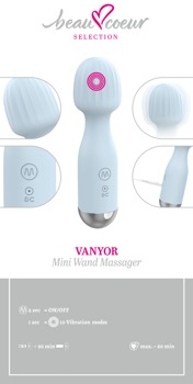 Handlicher VANYOR Mini Wand Massager von beau cœur in zarter Farbe – aber mit ordentlich Power! Aus seidig softem Silikon und mit sinnlichen Riffel-Strukturen am leicht beweglichen Massagekopf. Verwöhnt erogene Körperzonen und äußere Lustpunkte mit intensiven Vibrationen in 10 verschiedenen Modi. Für jede Lust und Laune ist der richtige Modus dabei – ganz bequem per Knopfdruck. Ein spiel- und anfängerfreudiges Toy für den Spaß allein und zu zweit, zuhause und unterwegs.
