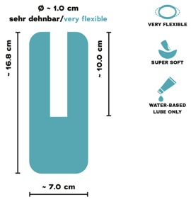 Gesamtlänge 16,8 cm, Einführtiefe 10 cm, Außen-Ø 7 cm, Innen-Ø 1 cm (dehnbar).