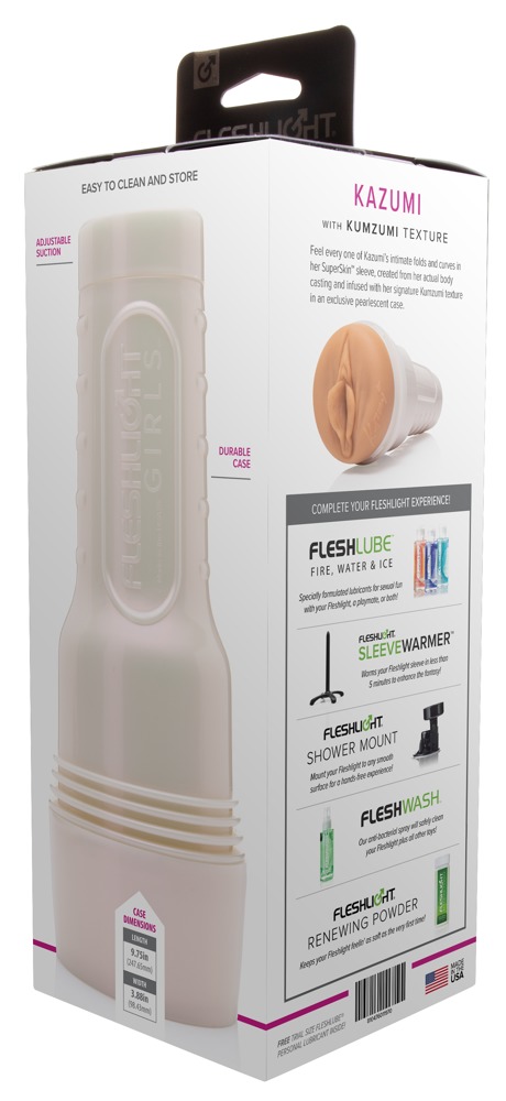 Griffiger Masturbator Kazumi von Fleshlight in diskreter Taschenlampen-Optik mit original abgeformter Vagina-Öffnung von Erotikstar Kazumi. Und auch das sehr abwechslungsreich strukturierte Innenleben mit verschiedenen Durchmessern kommt der engen Vagina von Kazumi ganz nah und sorgt für eine intensive, orgasmuswirksame Massage beim Handjob. Die Innensleeve aus hautähnlichem super softem Material ist neben der Öffnung mit einem Autogramm von Kazumi versehen und lässt sich zur Reinigung leicht aus dem Masturbator entnehmen.