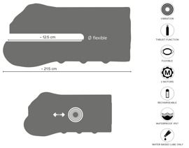 Gesamtlänge 21,5 cm, max. 13,5 cm breit, Einführtiefe 12,5 cm.