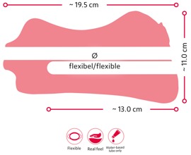 Gesamtlänge 19,5 cm, Einführtiefe Mund/Vagina 19,5 cm, Anus 13 cm (dehnbar);