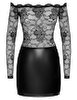 Schwarzes Langarm-Minikleid Orgia Exclusive von Noir aus bildschöner Spitze (Oberteil) im Mix mit Powerwetlook (Rockteil) – schmiegt sich an wie eine zweite Haut. Dabei weich und elastisch für hohen Tragekomfort. Eng und tailliert geschnitten mit großzügigem U-Boot-Ausschnitt.
