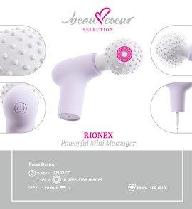 Der kompakte RIONEX Mini Massager von beau cœur sieht aus wie eine kleine schicke Massagepistole – und lässt sich auch genauso leicht und bequem handhaben. In dem soften Noppen-Massagekopf aus Silikon bündeln sich extrastarke Vibrationen, um punktgenau und tiefgehend zu stimulieren. So können Klitoris & Co sowie äußere Zonen am Körper ganz gezielt verwöhnt werden. 10 Vibrationsmodi bieten dabei vielseitiges Vergnügen und sind ganz easy per Knopfdruck direkt am Toy steuerbar. Perfekt für eine entspannte Me-Time und das prickelnde Warm-up zu zweit!