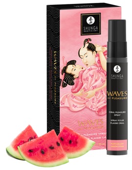 Das Mundspray Waves of Pleasure Watermelon von Shunga verwandelt Mund und Rachen in eine fruchtige Quelle der Lust für unvergesslichen Oralsex. Sommerfrische Wassermelone lädt zu verspielter Zungenkunst und zum intimen Küssen und tiefen Vernaschen ein. Einfach vor dem Oralsex in den Mund/Rachen sprühen.