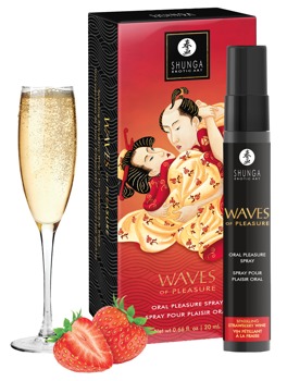 Das Mundspray Waves of Pleasure Strawberry Wine von Shunga verwandelt Mund und Rachen in eine fruchtige Quelle der Lust für unvergesslichen Oralsex. Prickelnder Erdbeersekt lädt zu verspielter Zungenkunst und zum intimen Küssen und tiefen Vernaschen ein. Einfach vor dem Oralsex in den Mund/Rachen sprühen.
