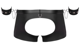 Schwarze Pants von Svenjoyment Bondage inklusive Soft-Handfesseln. Aufregend po-freie Pants im coolen Material-Mix aus Netz und Mattlook mit silberfarbenen Metalldetails. Weich und elastisch für besten Tragekomfort. Mit Reißverschluss im Beutel. Am bezogenen Bund und jeweils seitlich Fesselringe, in die die beiliegenden Handfesseln mit ihren Karabinerketten schnell eingehakt sind. Die soften Mattlook-Manschetten sind mit Klettverschlüssen schnell angelegt und angepasst.