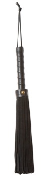 Kurzer Leder-Flogger von ZADO in stabiler Ausführung. Die unzähligen weichen Veloursriemen eignen sich zum Streicheln und handfesten Zuschlagen. Die hochwertige Peitsche ist komplett aus Leder gefertigt und liegt mit ihrem umwickeltem Griff gut und angenehm schwer in der Hand. Am Griffende mit praktischer Aufhänge-/Halteschlaufe.