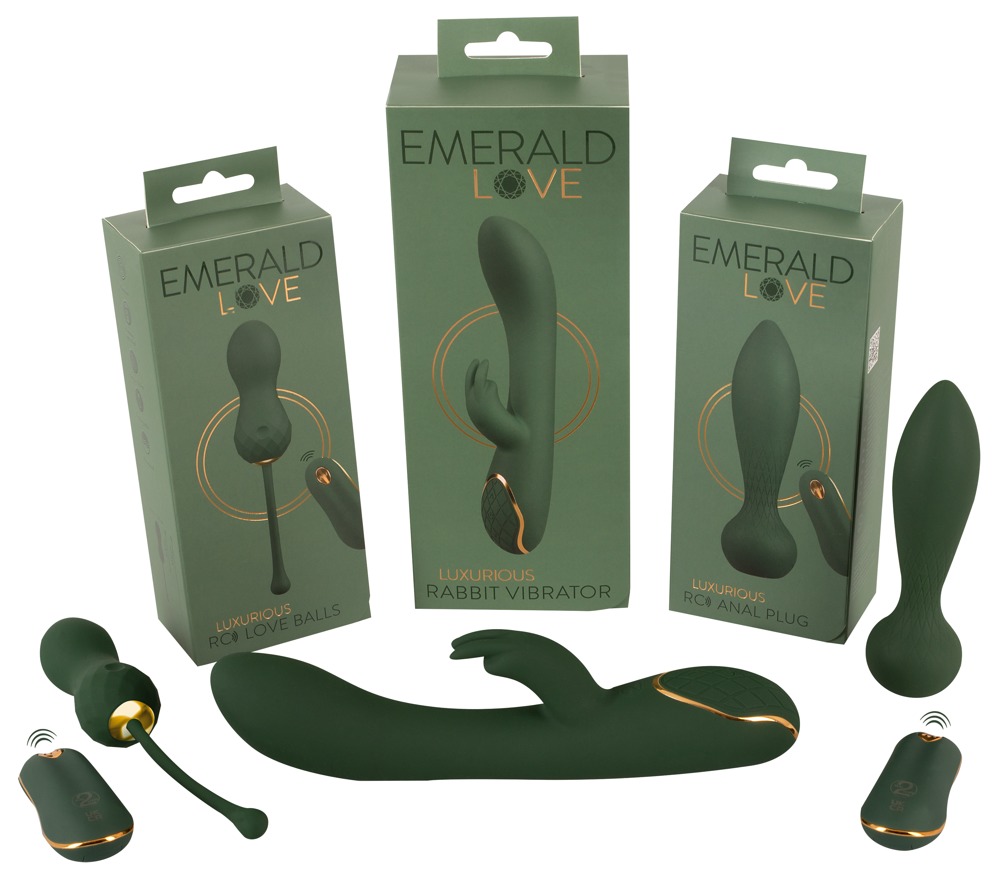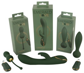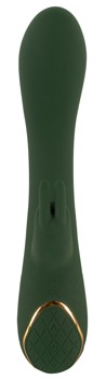Luxurious Rabbit Vibrator von Emerald Love by You2Toys für die perfekte Dual-Stimulation von Vagina und Klitoris. Ausfüllend und sinnlich geschwungen, um die vaginale G-Zone perfekt zu erreichen. Schön flexibel, um sich optimal der synchronen Stimulation und den intimen Konturen anzupassen. Aus seidig softem Silikon für leichtes Einführen und höchsten Verwöhn-Komfort. Der luxuriöse Rabbitvibrator im smaragd-grünen Edel-Design mit goldfarbenen Details überzeugt zudem mit seiner griffigen Rautenstruktur und simpelster Bedienung.