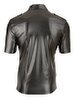 Druckknopfleiste, Schulterklappen und Brusttasche dominieren das Hemd aus glänzend schwarzem Lederimitat. Muskelbetonend geschnitten und leicht tailliert. Top auch zu Jeans!