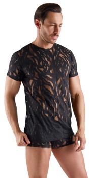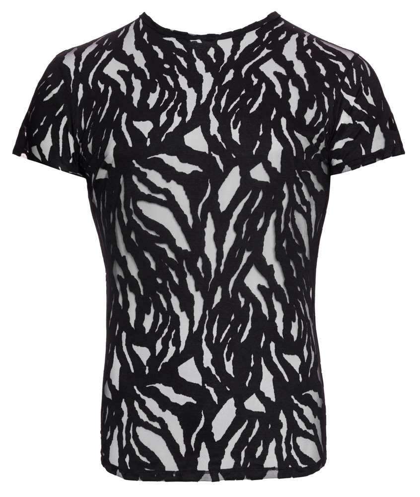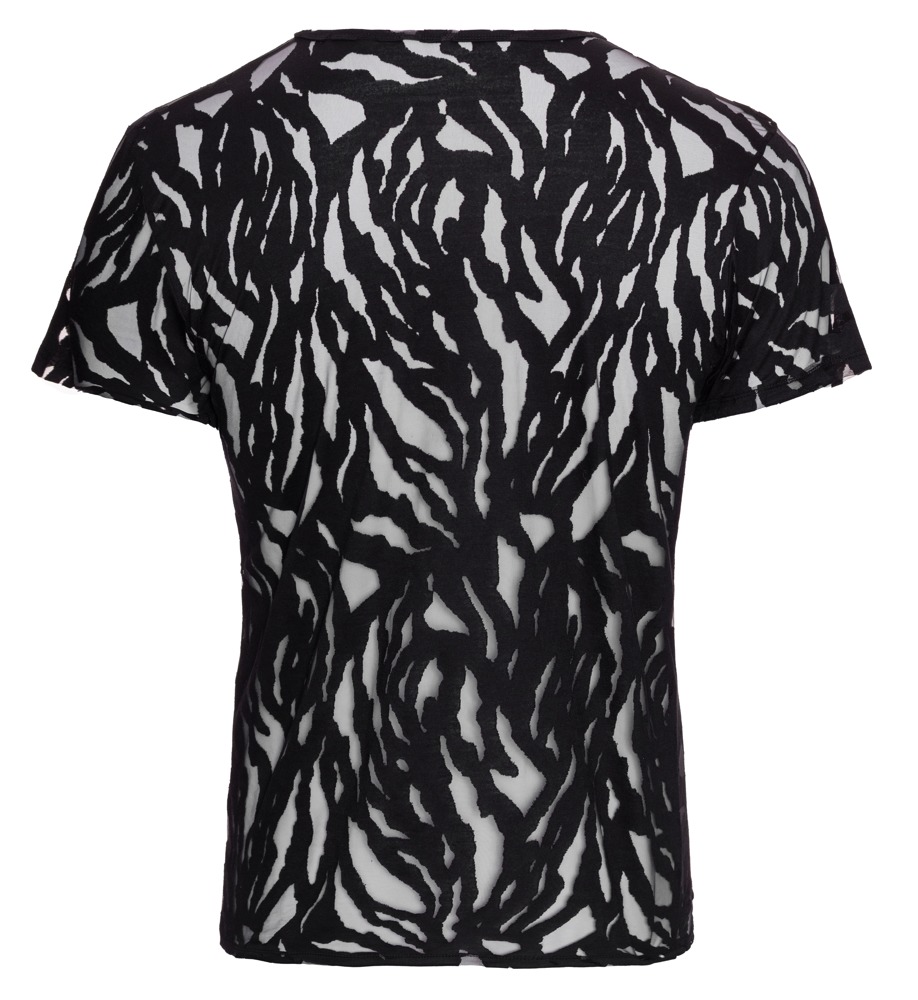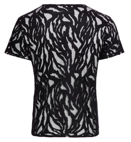 Betonendes Shirt von Svenjoyment mit kurzem Arm. In Schwarz und in lebhafter Ausbrenner-Optik – aufregend transparent und stylisch blickdicht im fantasievollen Wechselspiel. Rundum elastisch und weich anschmiegsam für maximalen Tragekomfort.