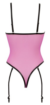 Atemberaubender Straps-Riobody von La finesse in transparentem Lila mit schwarzen akzentuierenden Kontrastdetails. Im edlen Material-Mix aus zarter Spitze und feinem Powernet. Schmiegt sich rundum weich und elastisch hautnah komfortabel an. Spitzen-Cups auf Bügel gearbeitet. Die Träger sind passend verstellbar. Im Schritt mit Druckknopfverschluss. Die verstellbaren Strumpfhalter sind komplett abnehmbar.