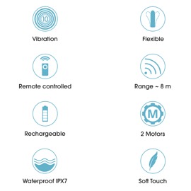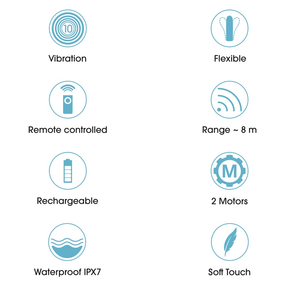 2 leise Motoren gewährleisten intensiven Vibro-Doppelspaß, 10 verschiedene Vibrationsmodi bieten dabei vielseitigen Genuss. Mit der praktischen Fernbedienung (Reichweite 8 m) lassen sich die Impulse von beiden bequem steuern. Die Vibrationen können auch direkt am Doppelvibrator per Knopfdruck gesteuert werden. Sogar in Bad und Dusche, denn der Dual-Vibrator ist wasserdicht.