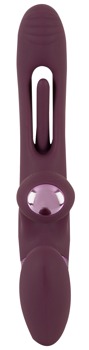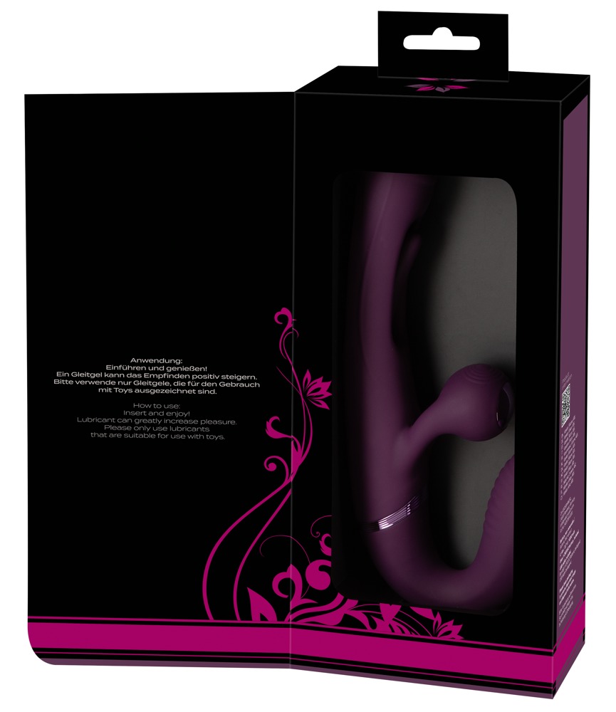 Gleich 4 kraftvolle, aber leise Motoren sorgen für zuverlässige Power. Die Funktionen steuert man bequem mit der Fernbedienung (Reichweite 8 m) oder direkt am Toy. Jedes Ende des Doppelvibrators ist separat steuerbar. Der kurze Vibrator bietet mit 10 Vibrationsmodi viel Abwechslung. Die Vibrationen des langen Vibrators und des äußeren Kugel-Stimulators sind miteinander kombiniert und werden von der blitzschnell swingenden Zunge (Flicking Tongue) im Schaft intensiv unterstützt. Auch diese Stimulationskombi ist in 10 Modi einfach per Knopfdruck steuerbar.