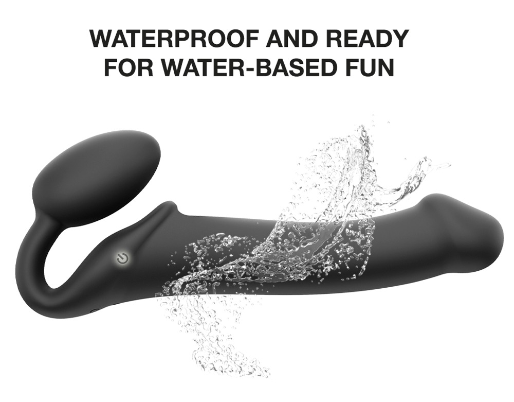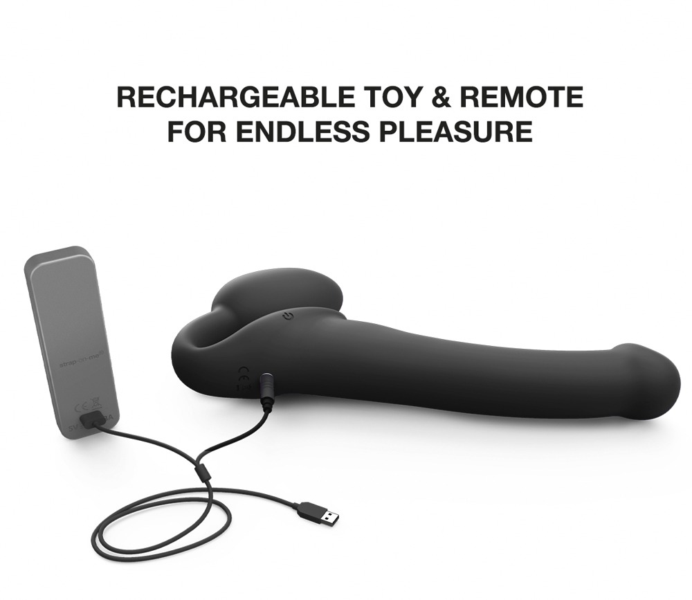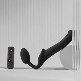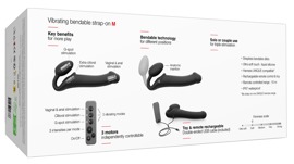 Der Vibrating Bendable Strap-On von Strap-on-me verwöhnt mit intensiven Vibrationen hoch 3 beim vielseitigen Solo oder beide beim heißen Rollenspiel, Pegging und Co. Gleich 3 starke, leise Motoren stecken im prallen Plug, im Kopf des markanten Schaftes und in der Mitte für eine kraftvolle Stimulation der Klitoris. Die Motoren lassen sich einzeln über die praktische Fernbedienung steuern; die Ein-Klick-Steuerung ermöglicht das Starten und Stoppen mit nur einem Tastendruck. 3 x 3 Vibrationsmodi in jeweils 3 Intensitäten bieten abwechslungsreichen Spaß – auch in Bad und Dusche, da der Strap-on-Vibrator wasserdicht ist.