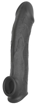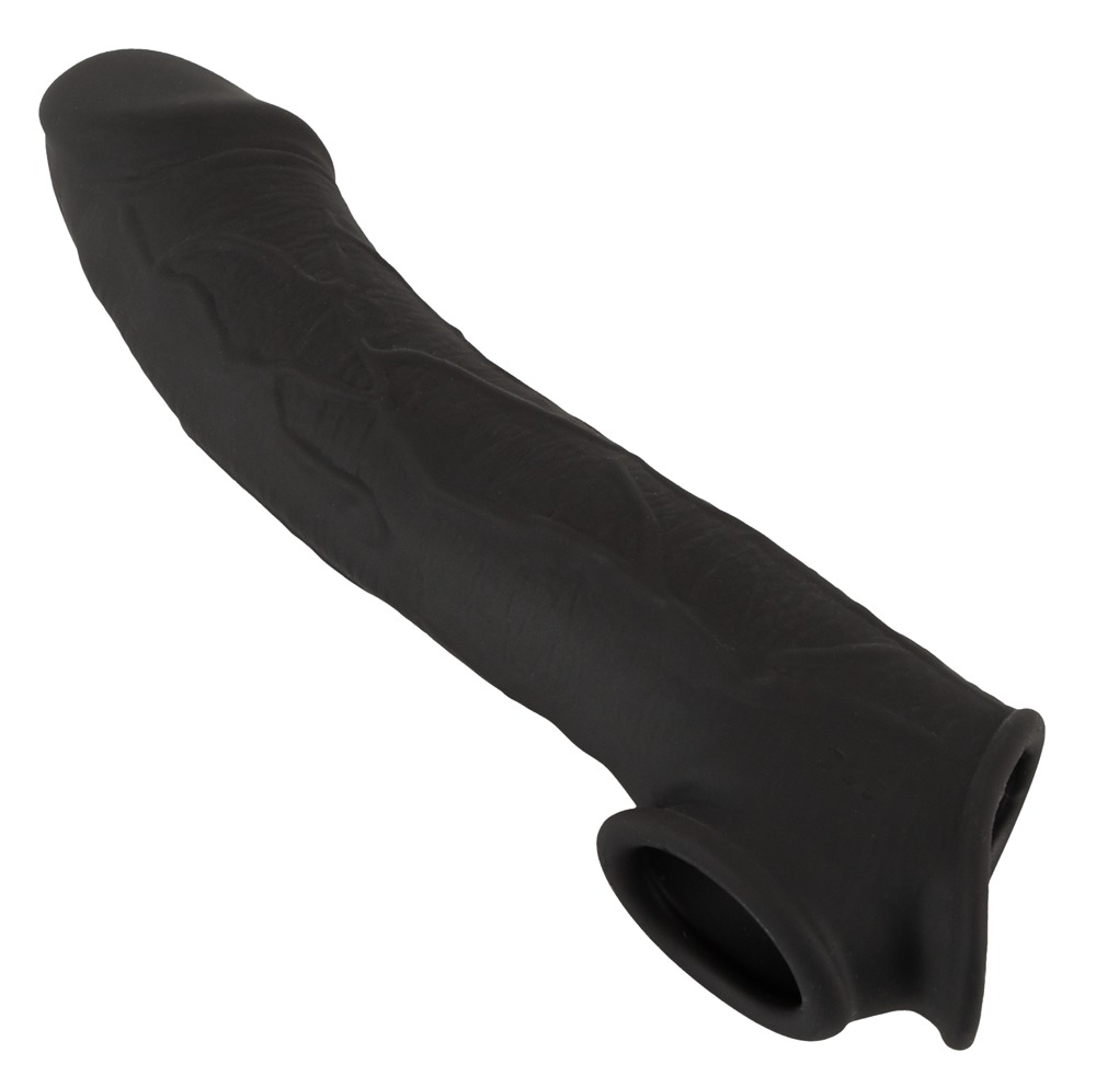 Aus seidig softem Silikon mit ausgeprägter Eichel und Äderung gefertigt, sieht die Penishülle nicht nur täuschend echt aus, sondern fühlt sich auch genauso an. Hochelastisch und dehnbar lässt sie sich leicht überstreifen. Der angenehm enge Sitz unterstützt und pusht die Erektion, während der sehr dehnbare Hodenring für aufregenden Zug sorgt und alles sicher an Ort und Stelle hält. Kein Abrutschen, auch nicht beim wilden Stellungswechsel!